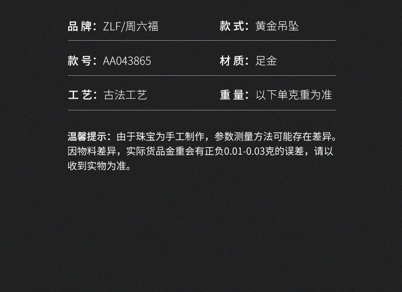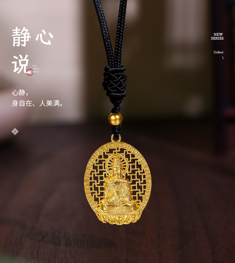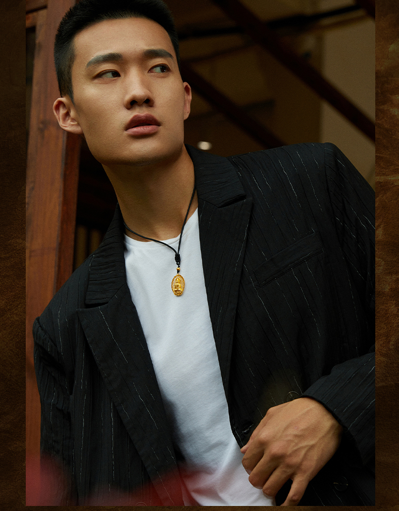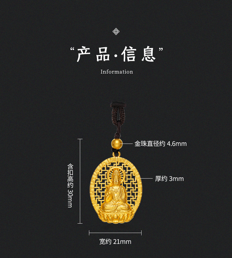 周六福黄金吊坠男女兔年文殊菩萨本命佛计价古法金坠子圣诞礼物 5.3g