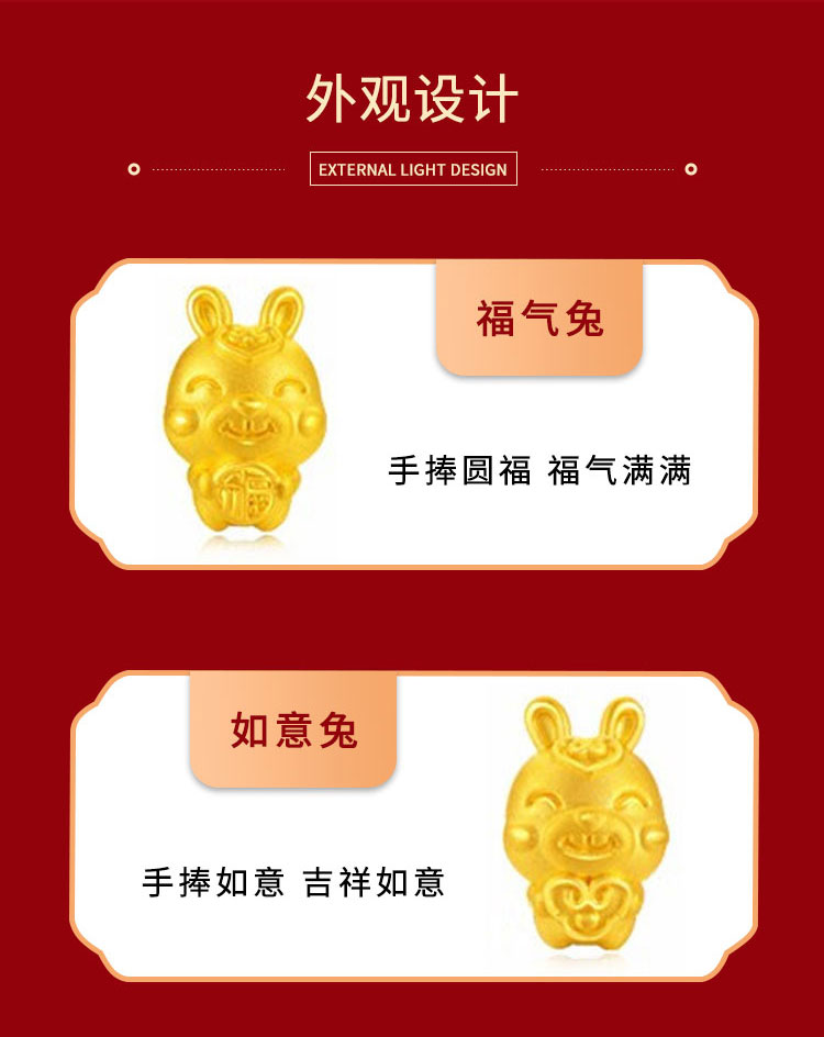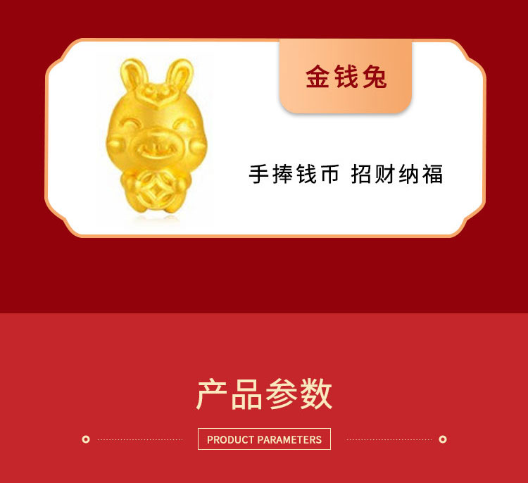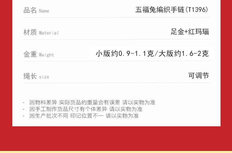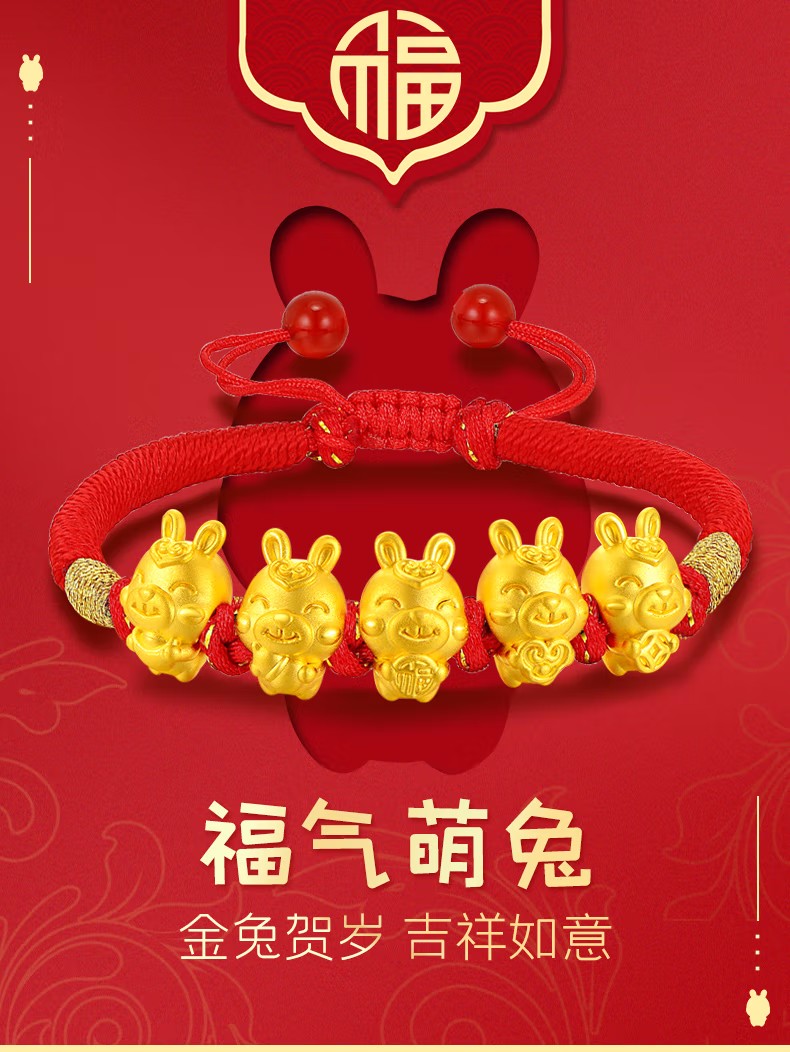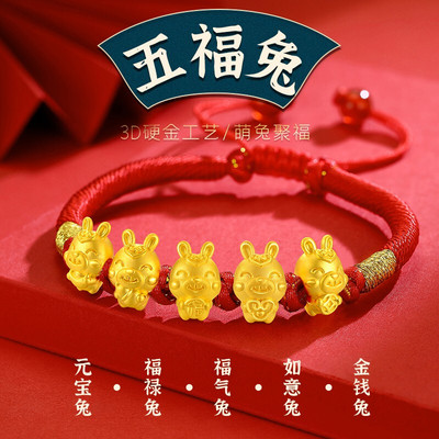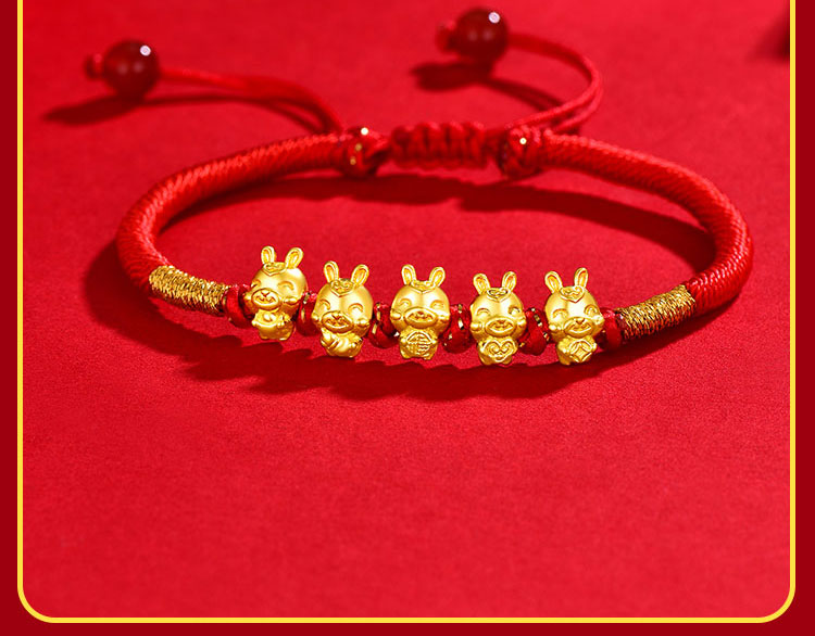 送女友老婆本命年兔年五福兔黄金手链生肖兔男女红绳