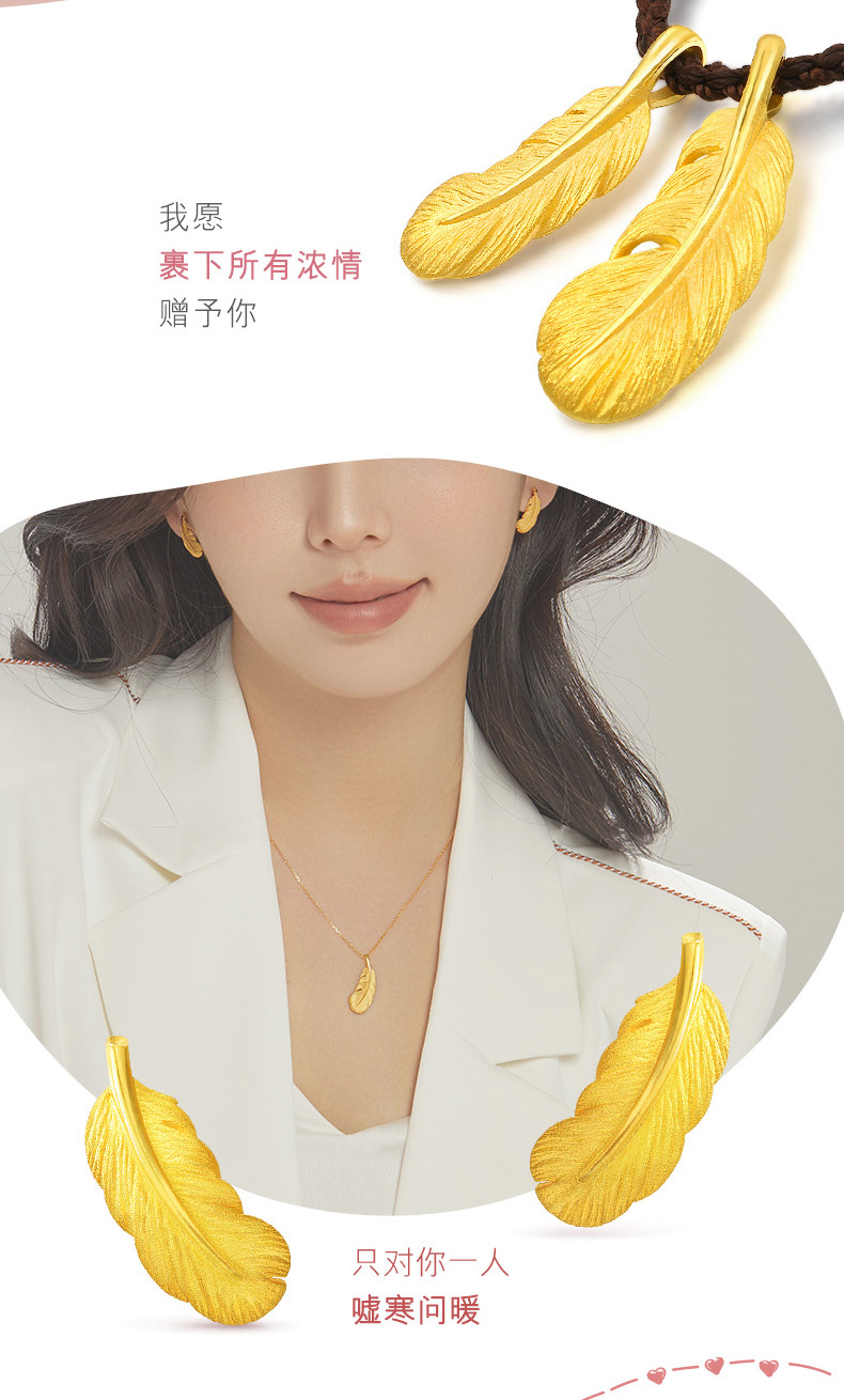 圣诞礼物周生生黄金羽毛吊坠爱情密语黄金挂坠不含项链女